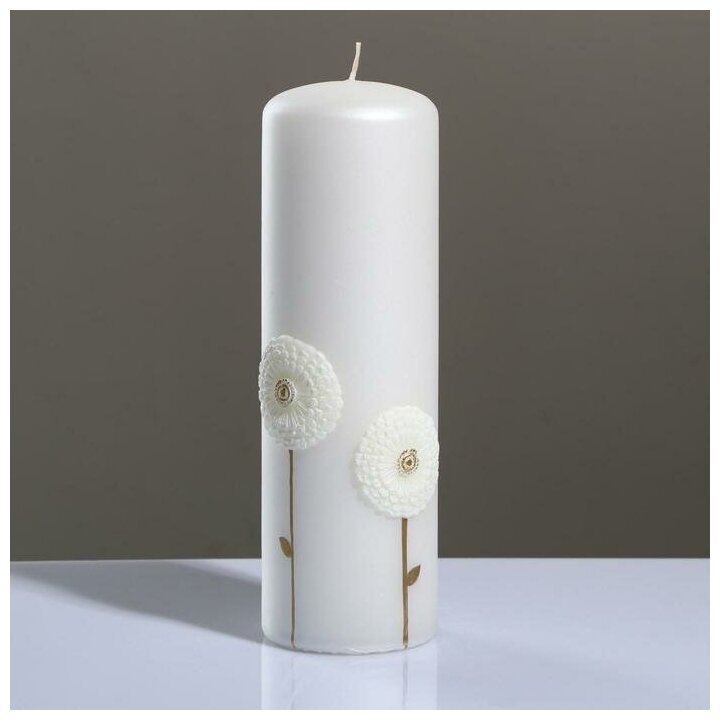 Свеча - цилиндр "Одуванчики", 6x19 см, белый информация: