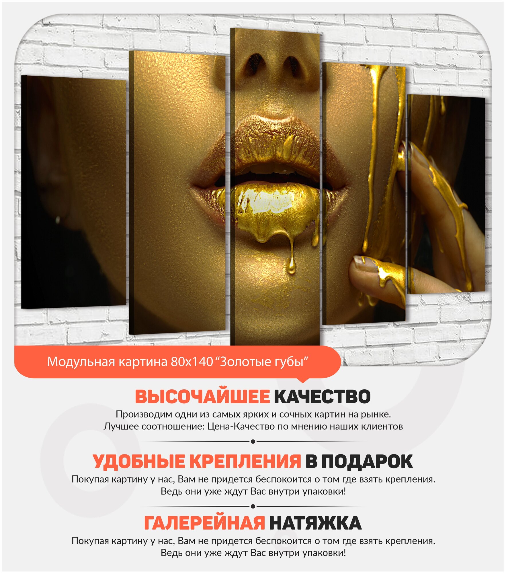 Отзывы на Картина модульная большая на стену, интерьерная, на холсте, готовая, в спальню, в гостиную, Девушка в золоте, 140х80см