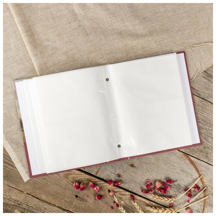Фотоальбом BRAUBERG на 200 фото 10*15 см, под гладкую кожу, красный, бокс, бумажные страницы, 391193