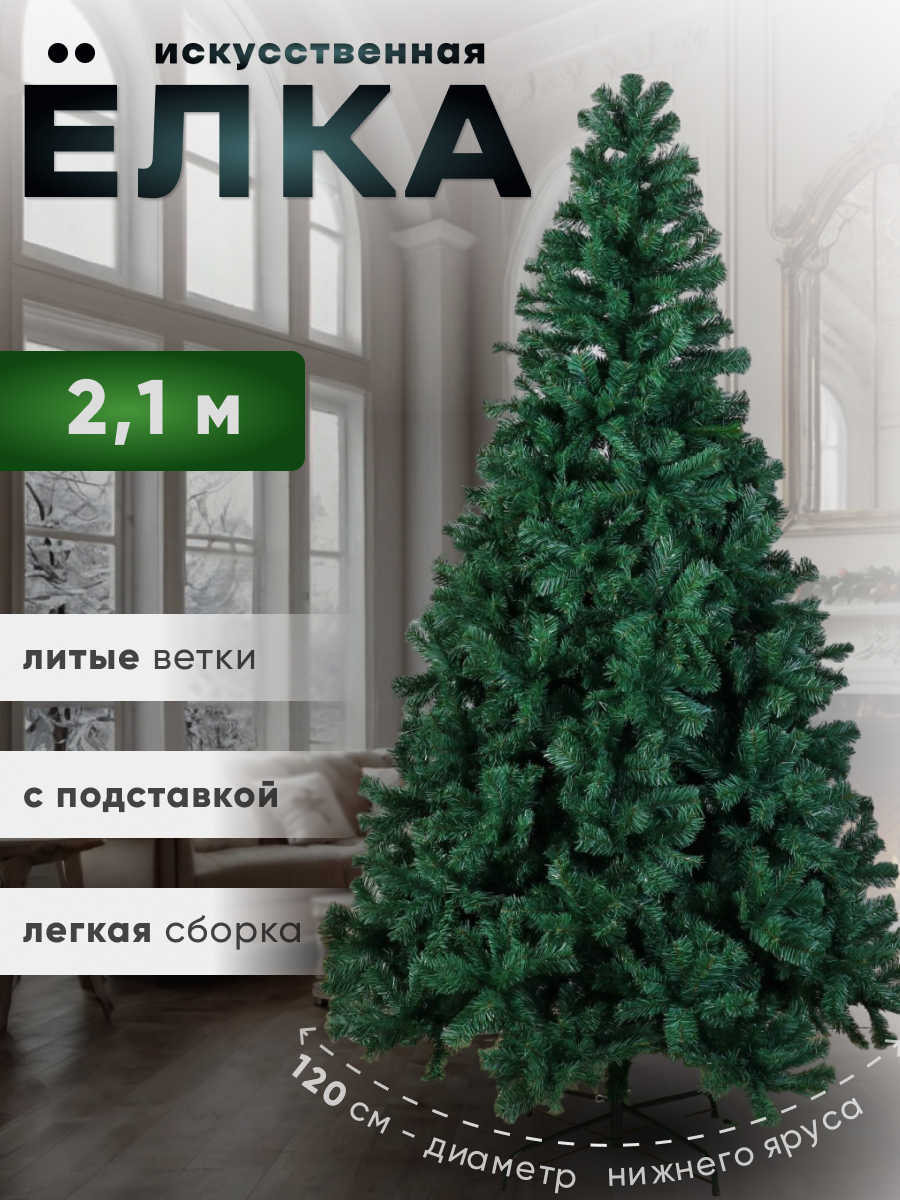 Искусственная Ёлка "Кремлёвская" Ёлкино, Литая 210 см// Новогодняя интерьерная ёлка