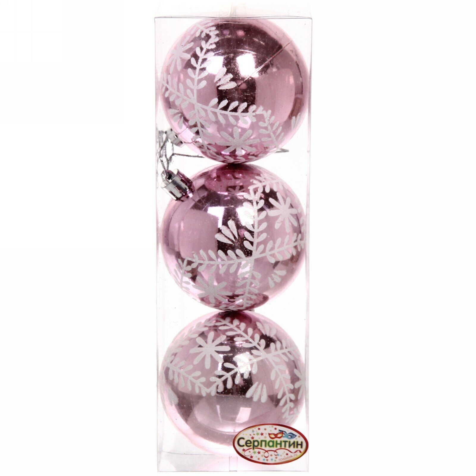 10 цен на Новогодние шары 7см (набор 3шт) «Хвойные веточки», розовый