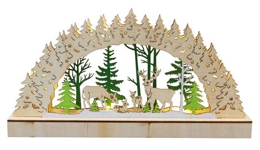 Деревянная фигурка с подсветкой «Семейство оленей» 30х5х15,7 см