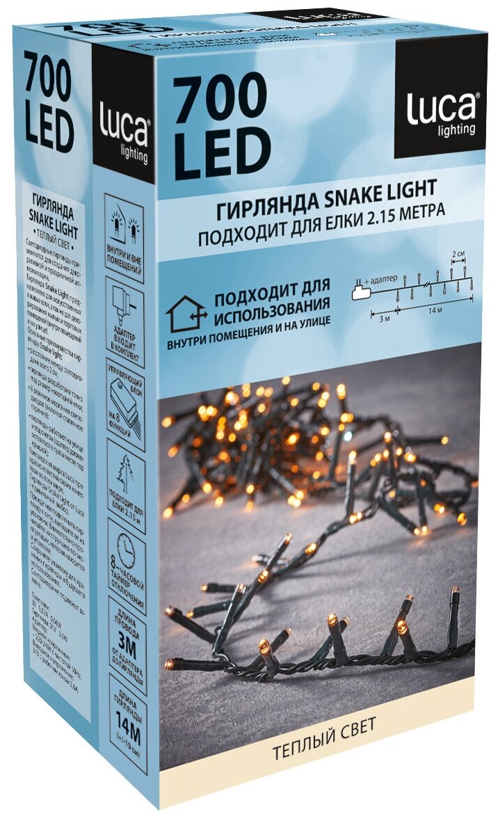 Светодиодная гирлянда на елку 215 см Luca Snake, 700 экстра теплых белых LED ламп, зеленый ПВХ, контроллер, IP44, Edelman, Luca 1073241/83782 3 301 ₽