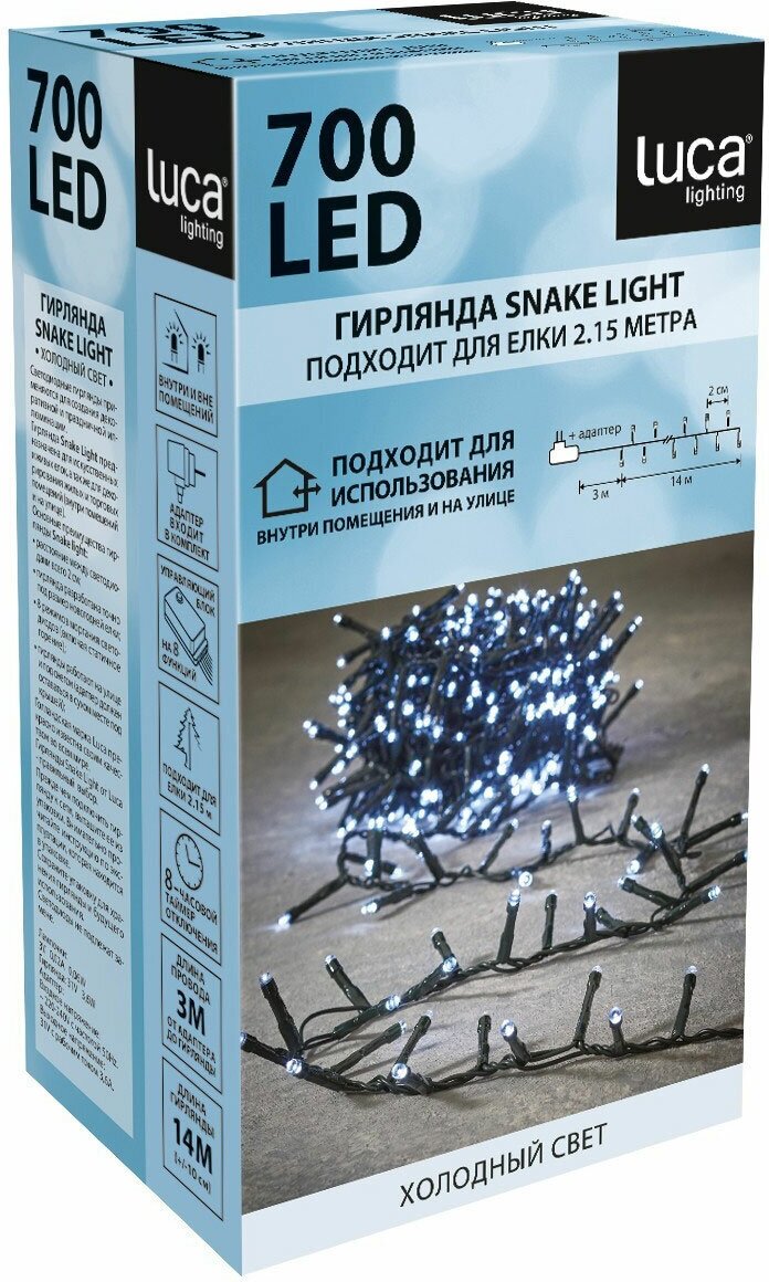 Edelman Светодиодная гирлянда на елку 215 см Luca Snake, 700 холодных белых LED ламп, зеленый ПВХ, контроллер, IP44 83774