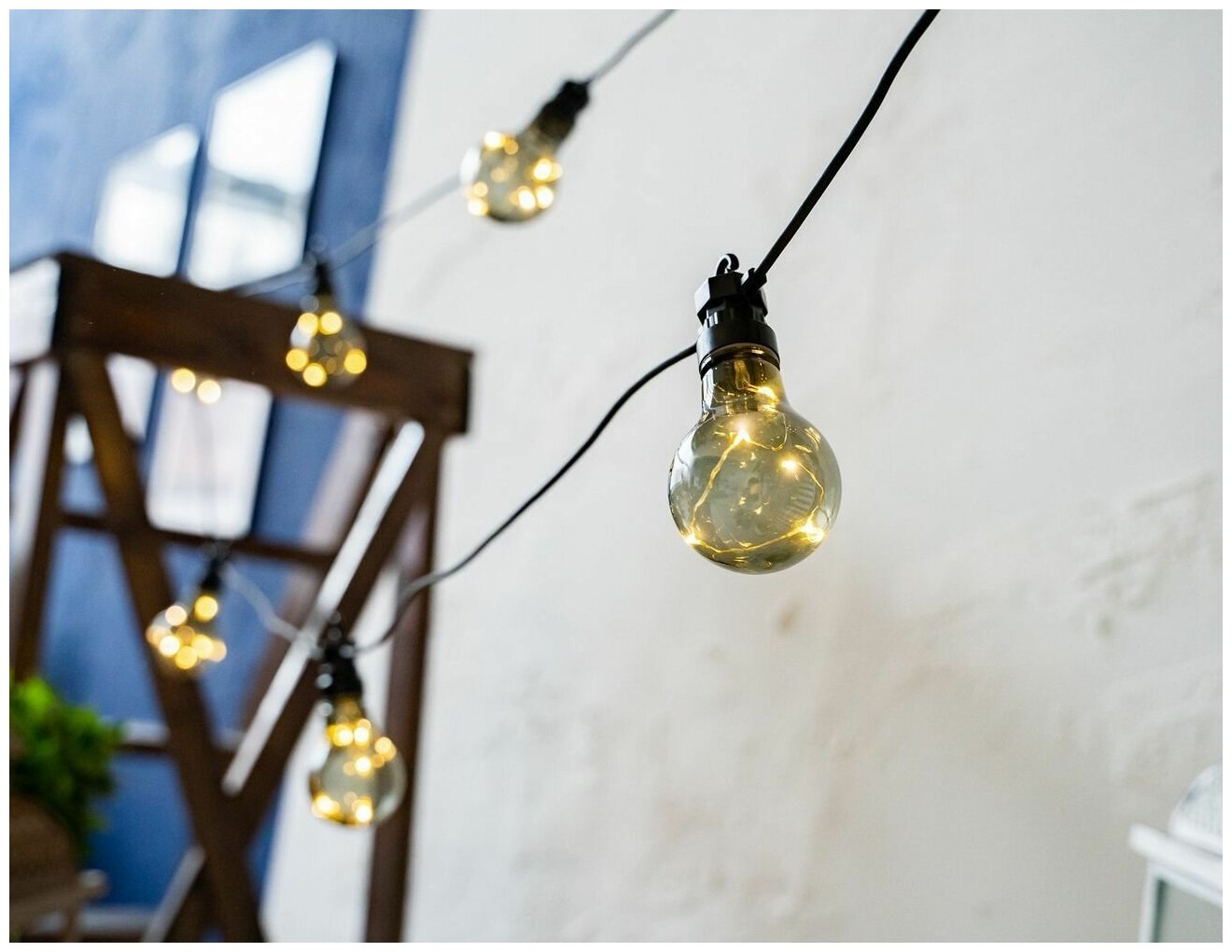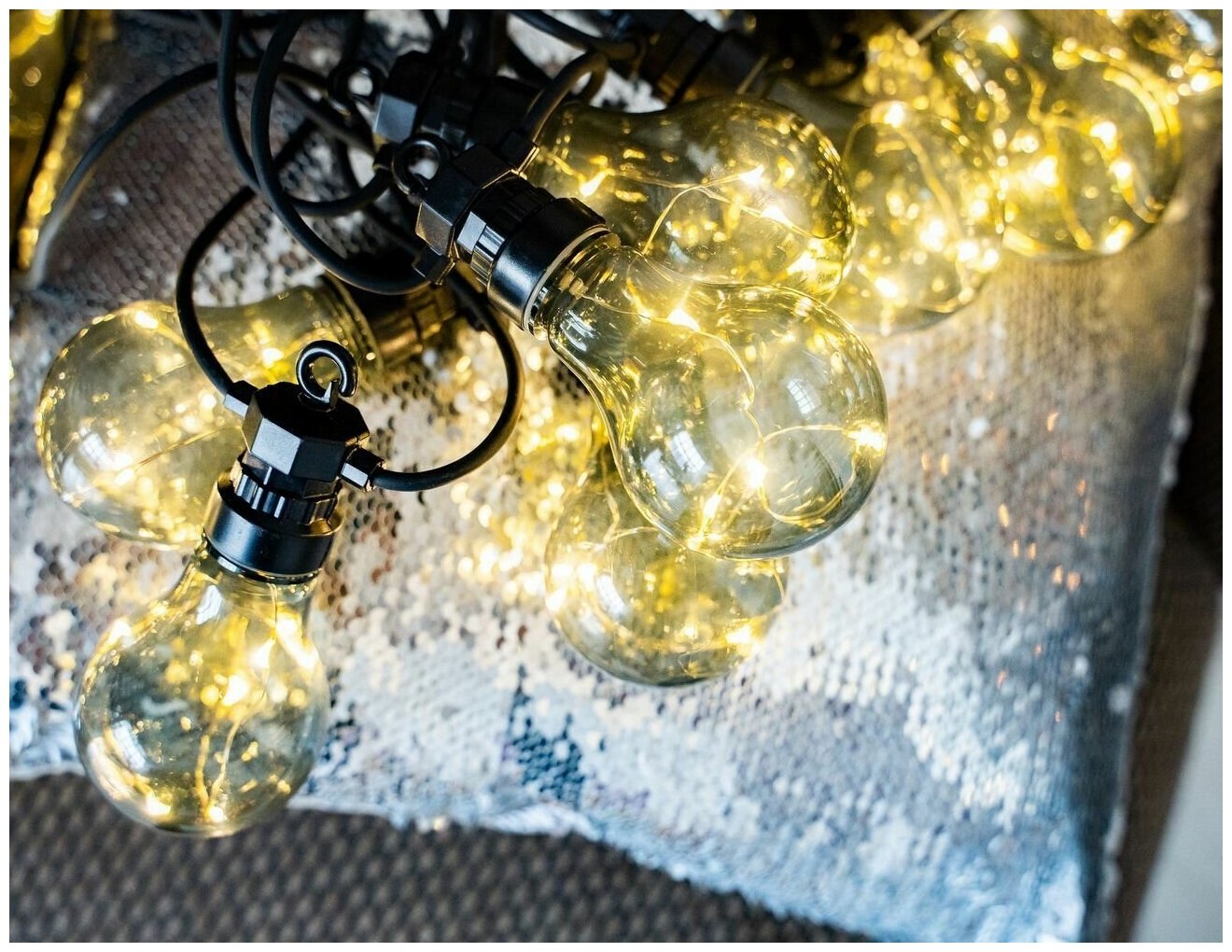 Отзывы на Ретро гирлянда светлячки В лампочках дымчатая, 20 ламп, 100 тёплых белых микро LED-огней, 9.5+5 м, чёрный провод, коннектор, уличная, Kaemingk (Lumineo) 490178