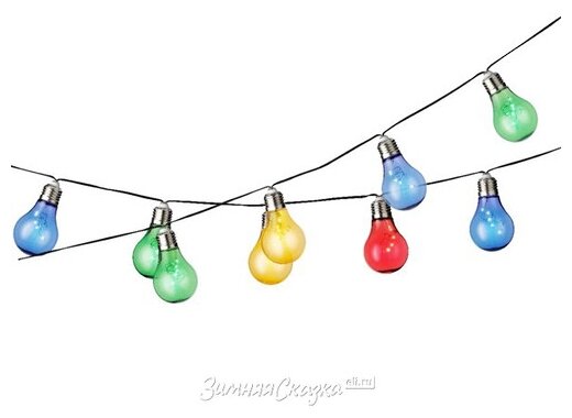 Отзывы на Садовая электрогирлянда GLOW, 10 разноцветных мерцающих ретро ламп, 50 тёплыми белыми micro LED-огнями, 4.5+5 м, черный PVC провод, уличная, Kaemingk (Lumineo) 894986