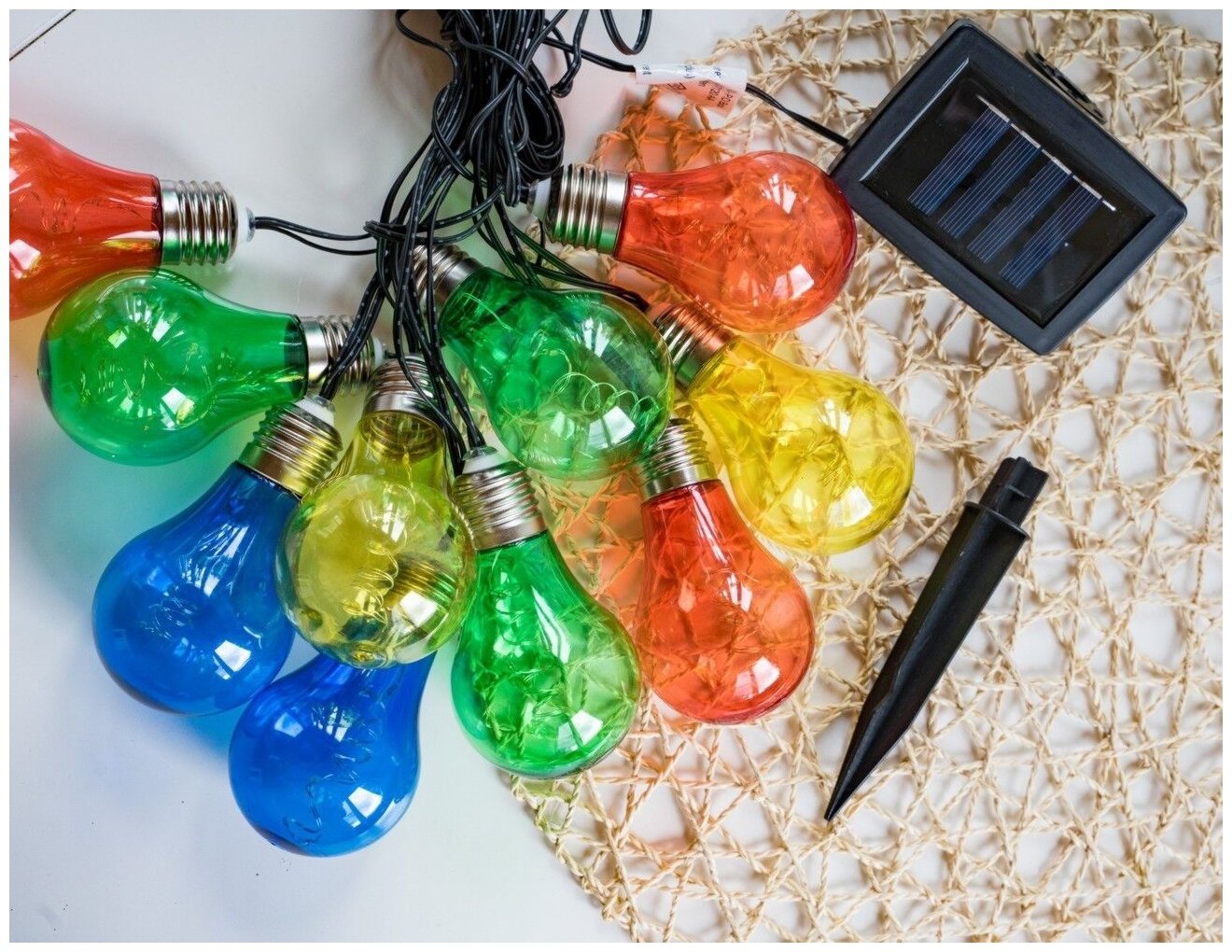 Kaemingk Гирлянда лампочки на солнечной батарее Solar Colors 4.5 м, 10 разноцветных ламп с теплым белым свечением, мерцание, черный ПВХ, IP44 894986