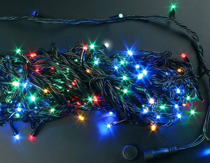 VEGAS Электрогирлянда "Нить" 200 разноцветных LED ламп, контроллер 8 режимов, зеленый провод, 20 м, 220 v /20