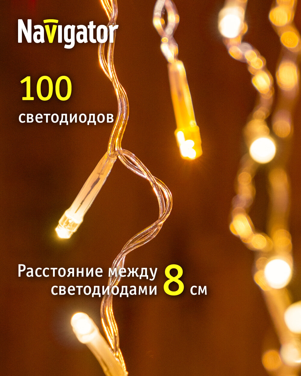 Гирлянда новогодняя светодиодная NGF-I02-100WW-8-3.5m-230-TR-IP44 (61843 NGF-I02) | код. 21285 | Navigator Group ( 1шт. ) 1 930 ₽