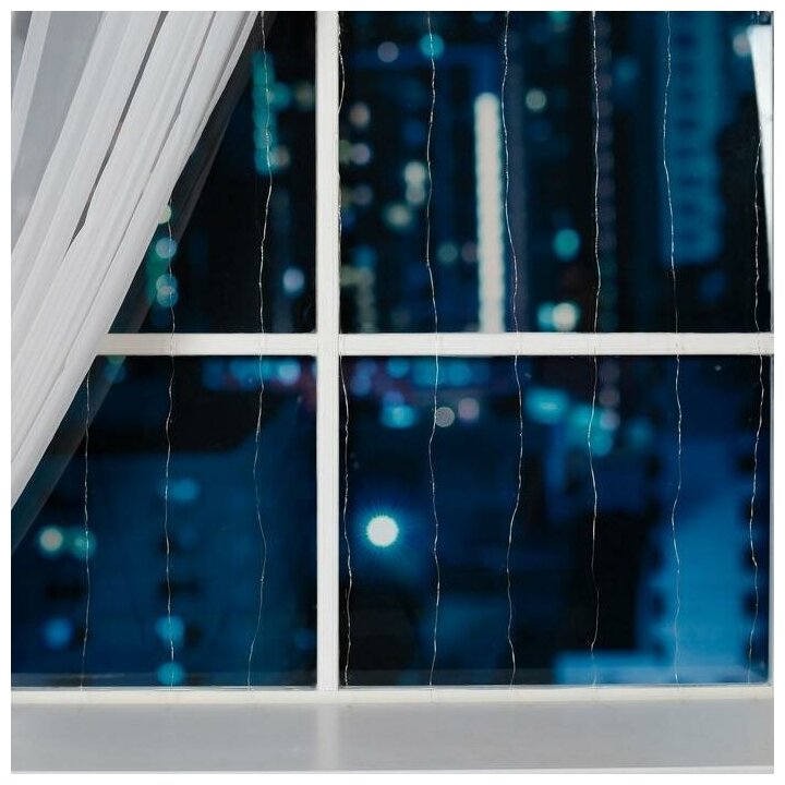 Отзывы на Гирлянда "Занавес" 1 х 1 м роса, IP20, серебристая нить, 100 LED, свечение белое, 12 В