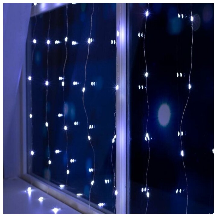 10 цен на Гирлянда "Занавес" 1 х 1 м роса, IP20, серебристая нить, 100 LED, свечение белое, 12 В