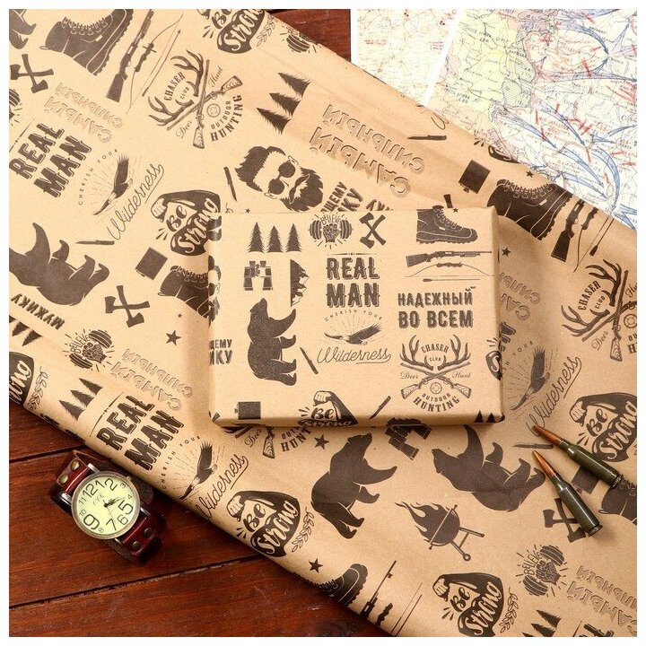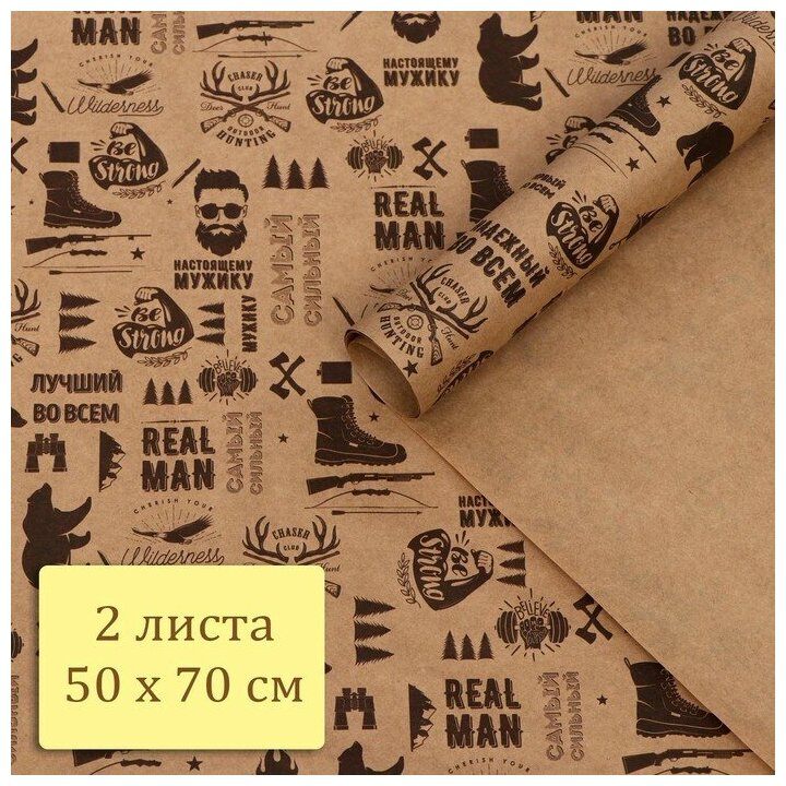 10 цен на Бумага упаковочная крафтовая «REAL MAN», 50 × 70 см 2 листа 6301296