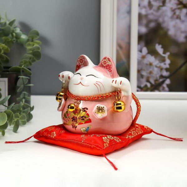Отзывы на Сувенир керамика копилка "Розовый кот Манэки-нэко с колокольчиками" 11.5х11.5х9.5 см