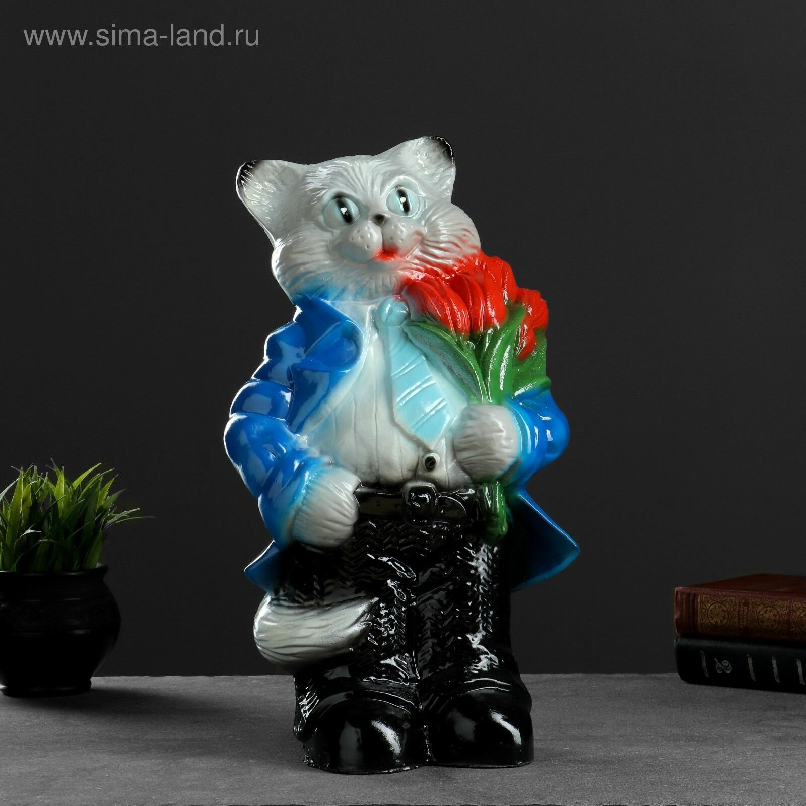 Копилка "Кот большой с тюльпанами" серый 20х23х41см микс информация: