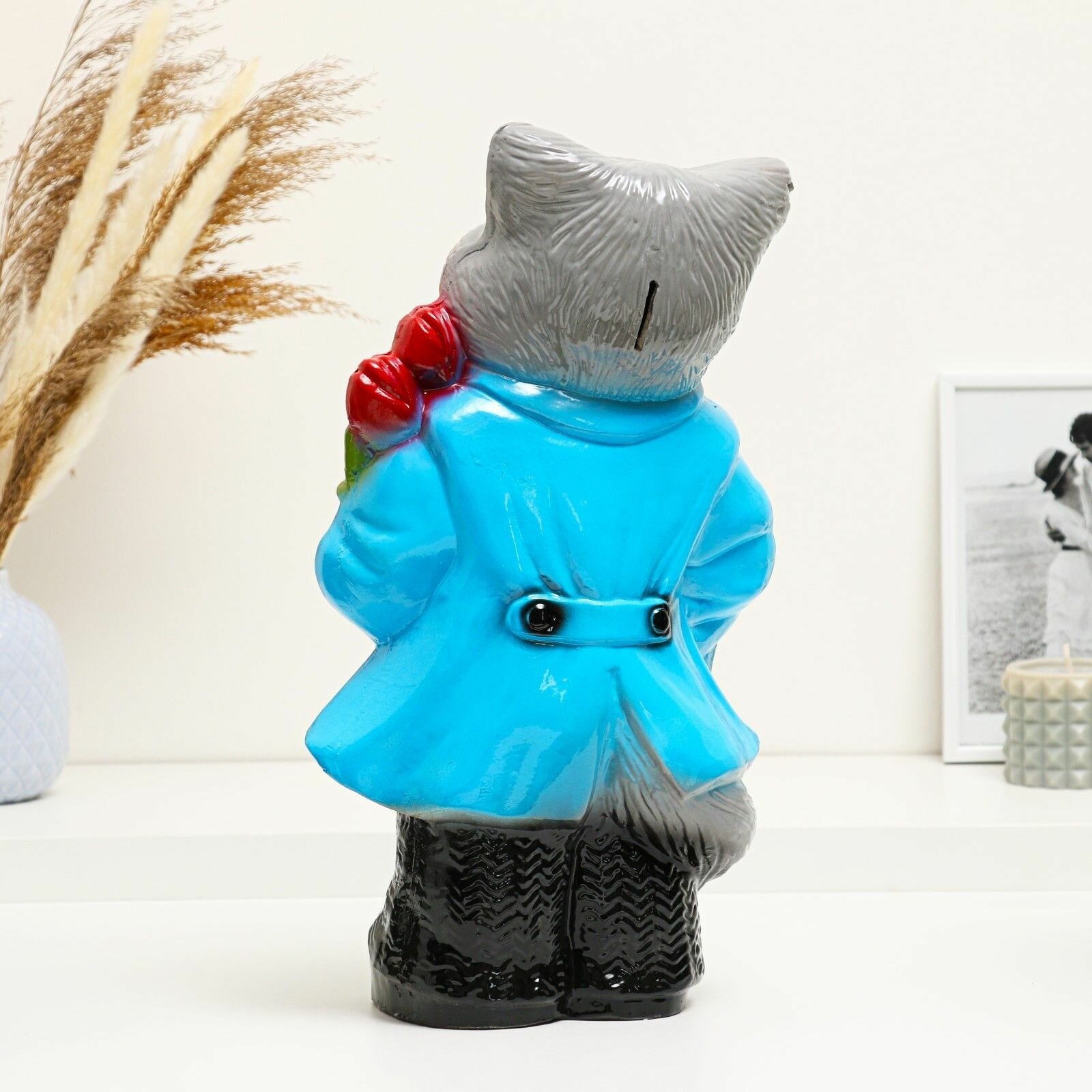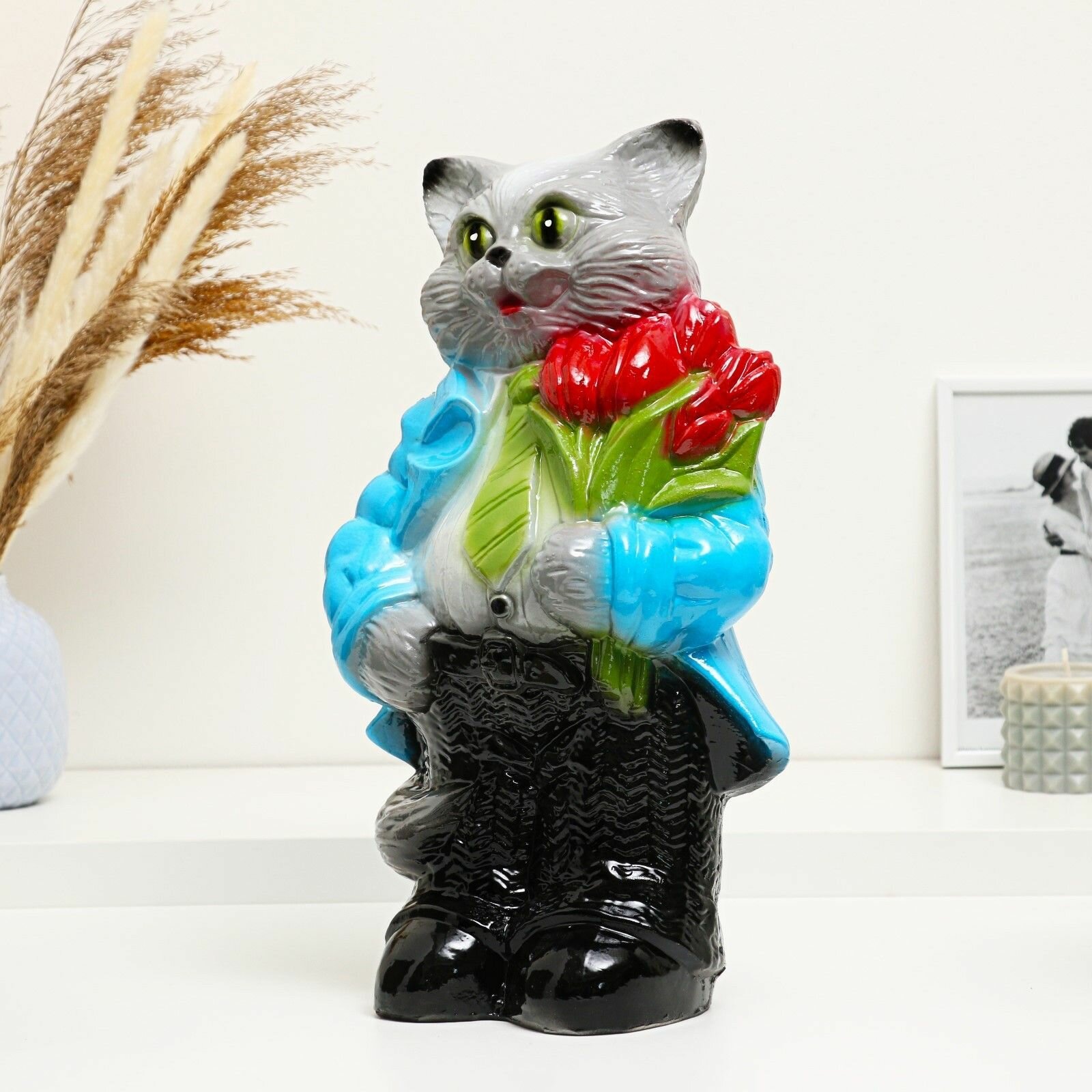 10 цен на Копилка "Кот большой с тюльпанами" серый 20х23х41см микс