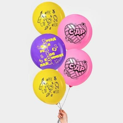 Воздушный шар латексный 12" "С днём рождения", универсальный, хром, 5 шт.