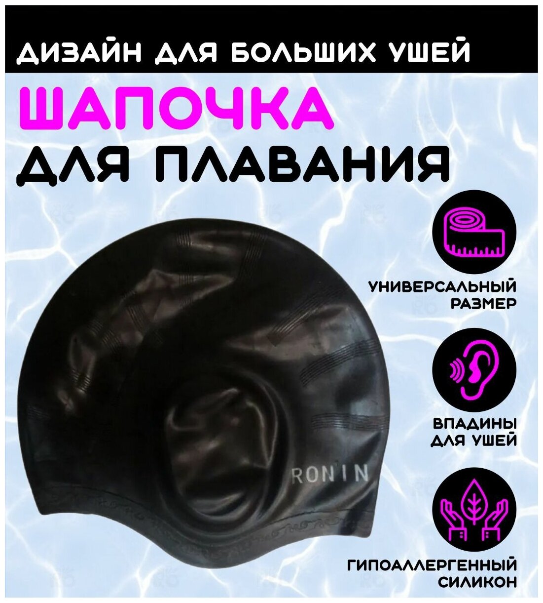 Спортивная шапочка для плавания взрослая / детская / силиконовая плавательная шапочка для бассейна / купания / для больших ушей / черная информация: