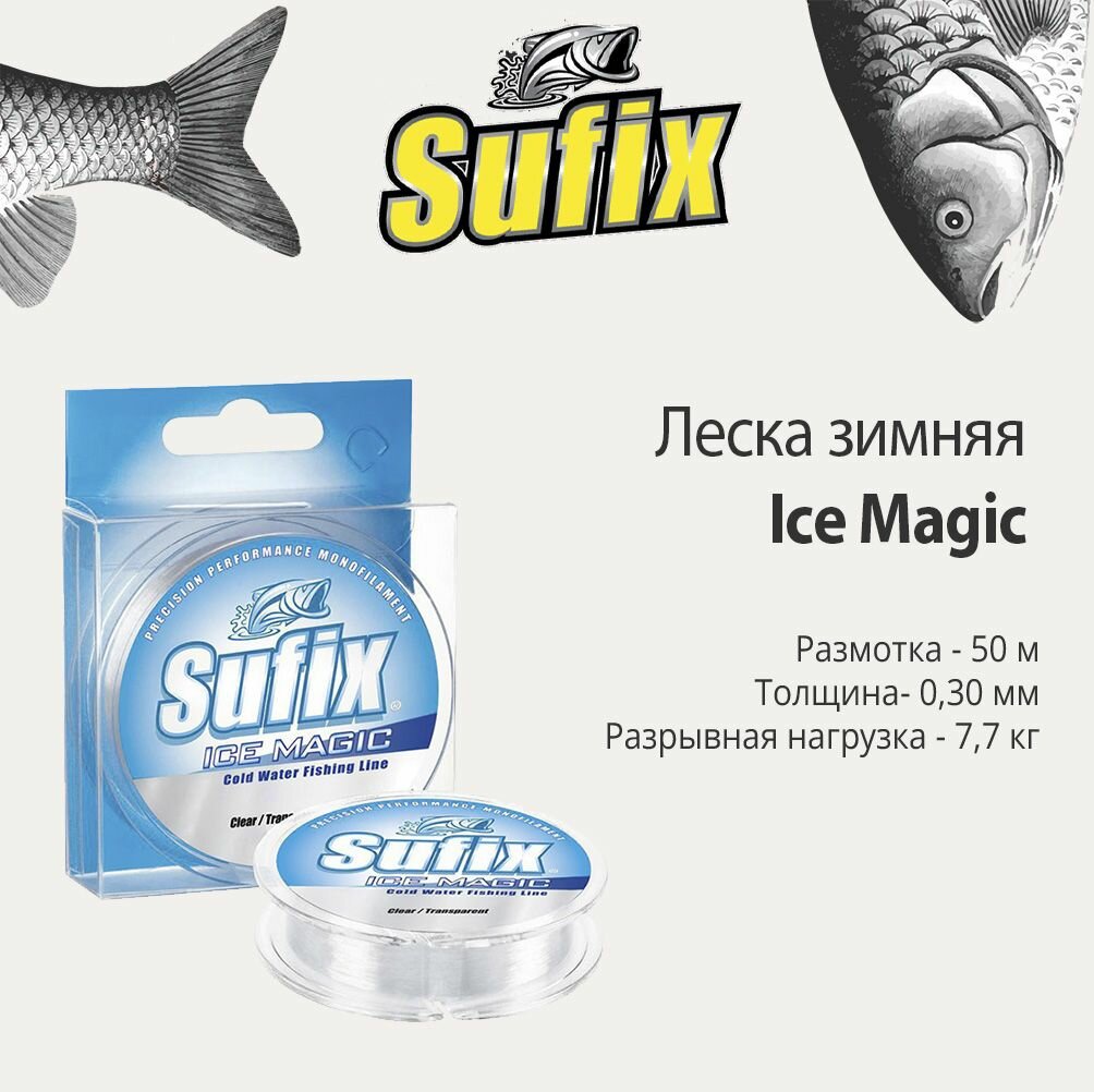 10 цен на Леска зимняя SUFIX Ice Magic прозрачная 50м 0.30мм 7,7кг