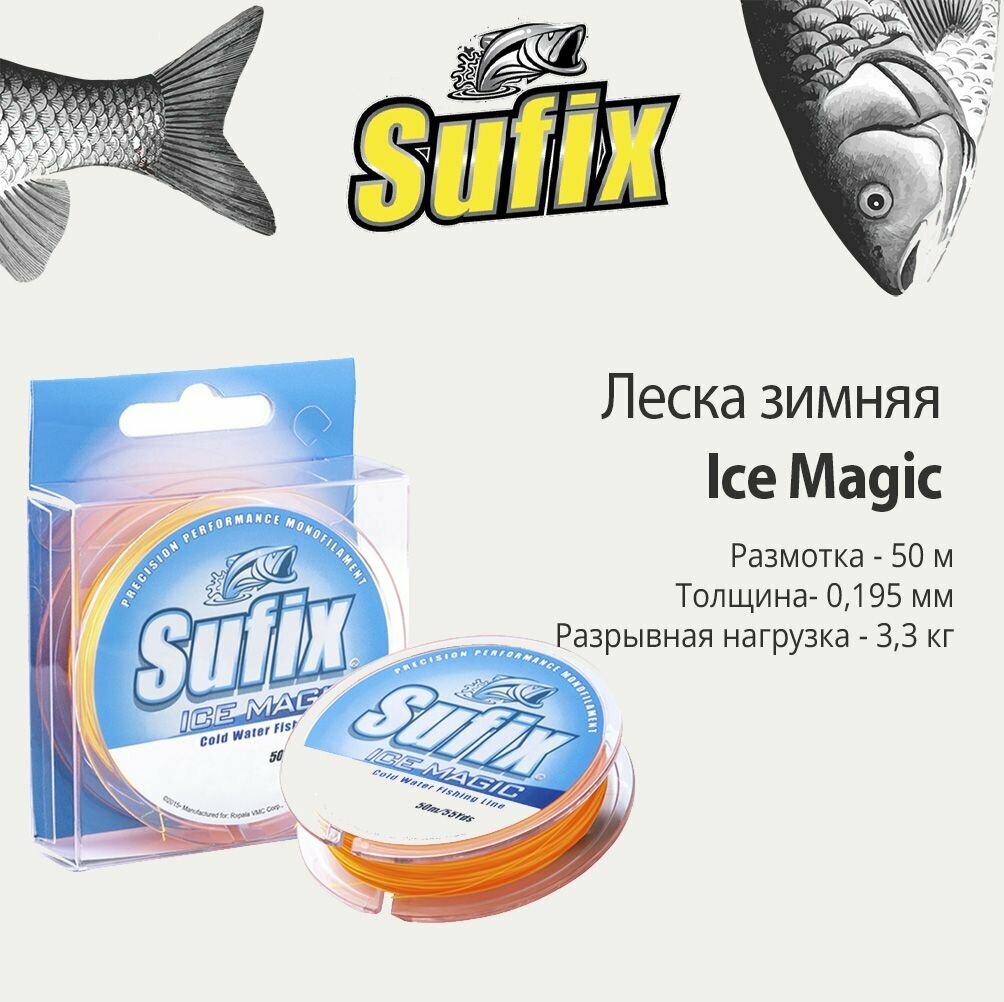 Леска монофильная зимняя SUFIX Ice Magic прозрачная (блистер) 50м 0,195мм 3,3кг