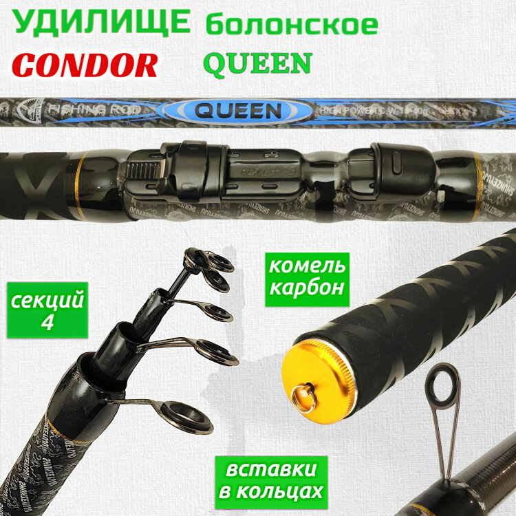 10 цен на Удилище Condor Queen, c кольцами, длина 4 м, тест 15-40 гр, carbon IM-8