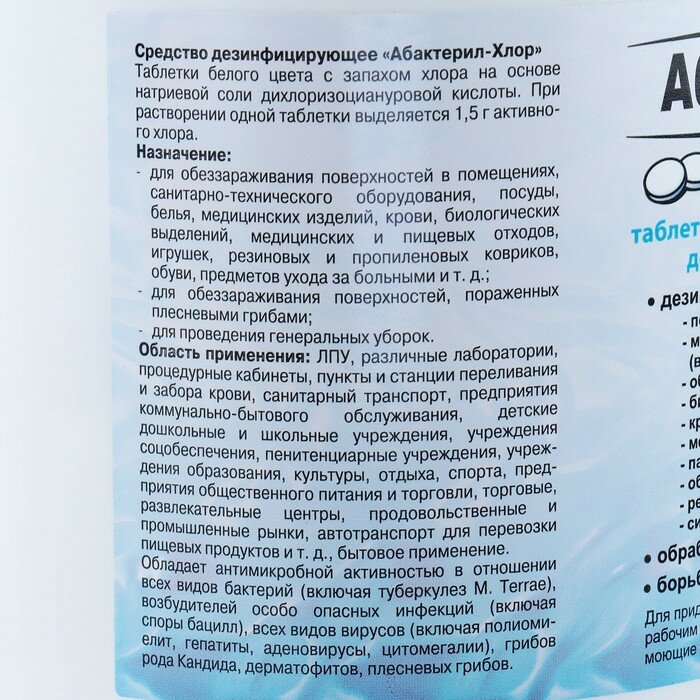 Абактерил Дезинфицирующее средство "Абактерил-Хлор", 300 таблеток, 1кг информация: