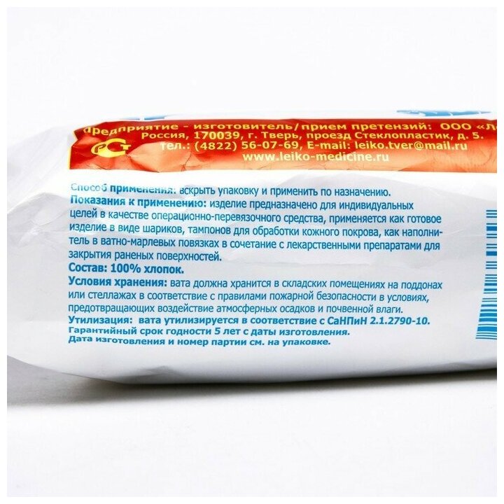 Лейко Вата хирургическая нестерильная ГОСТ 5556-81 100 г.