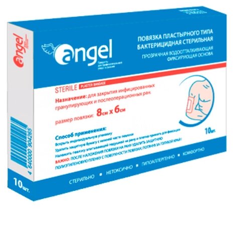 Повязка ANGEL пластырная бактерицидная д/ран стер. 6 х 8см №10