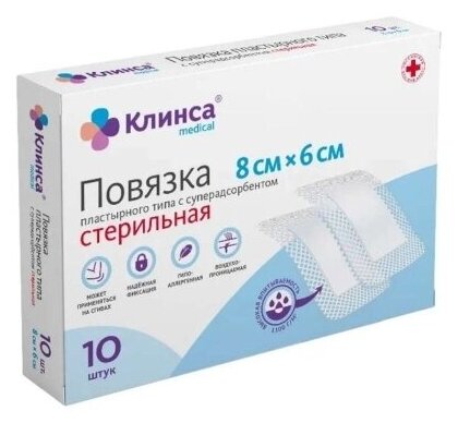 Повязка пластырного типа суперадсорбирующая стерильная, 8 см x 6 см, 10 шт. информация: