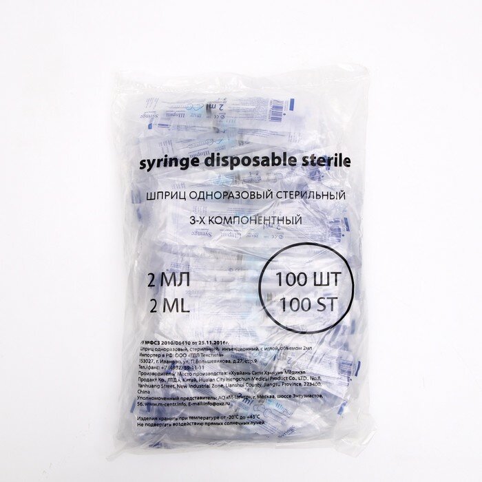 10 цен на Шприц 2,0 мл трехкомпонентный с иглой 23G Хуайань