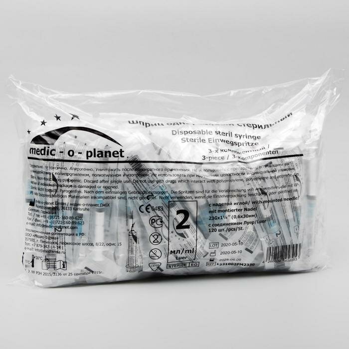 Шприц Medic-o-planet 2,0 мл с иглой 23 Gх1 1/4" (0,6х30мм) информация: