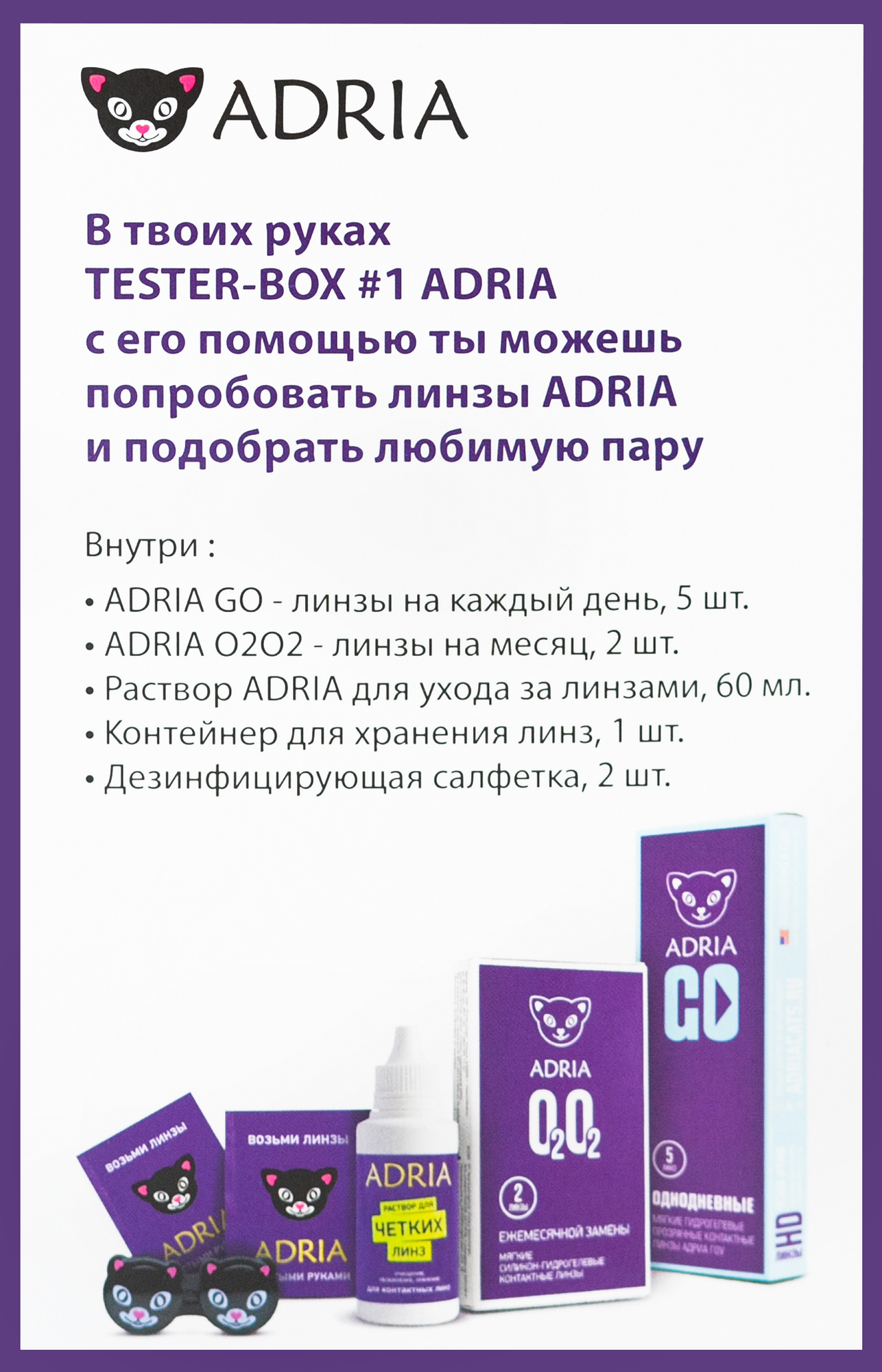 10 цен на Контактные линзы Adria Tester Box #1 ( Adria О2О2 ежемесячные 2шт, Adria GO однодневные 5шт.), -6,50 / 14,2/ 8,6