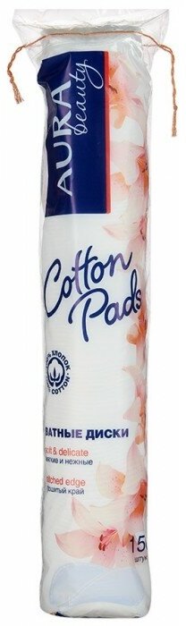 Aura Диски ватные 100% хлопок с эффектом "прошитого" края, 150 шт