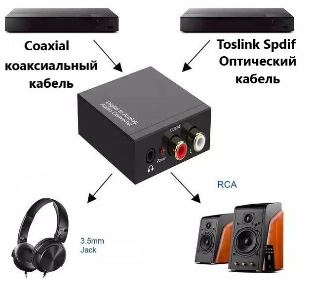 Конвертер оптика RCA тюльпаны Optical SPDIF Toslink Coaxial Digital AUX 3.5 Jack TV dvd с телевизор Ps5 PS4 PS3 XBOX информация: