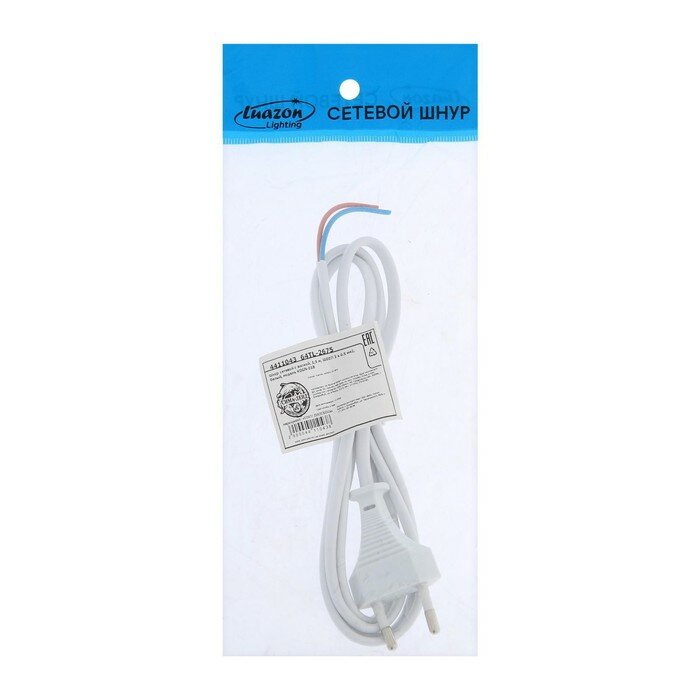 Шнур сетевой с вилкой, 1,5 м, ШВВП 2 х 0.5 мм2, белый./В упаковке шт: 1 информация: