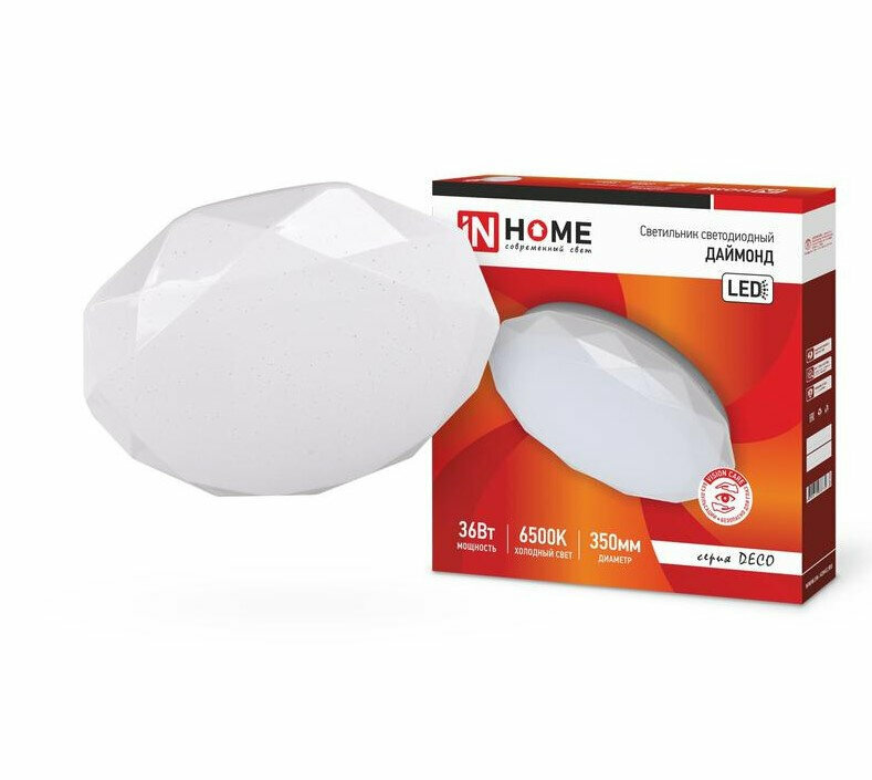 Отзывы на Светильник светодиодный DECO даймонд 36Вт 230В 6500К 2340лм 350мм IN HOME 4690612033730