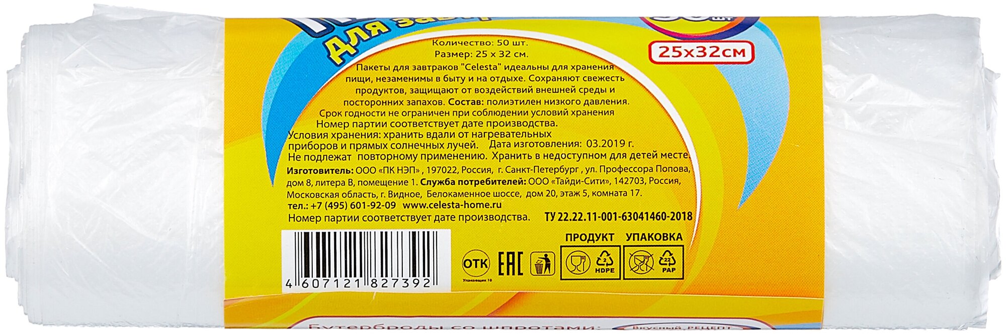 Пакеты для завтраков 50шт «CELESTA» информация:
