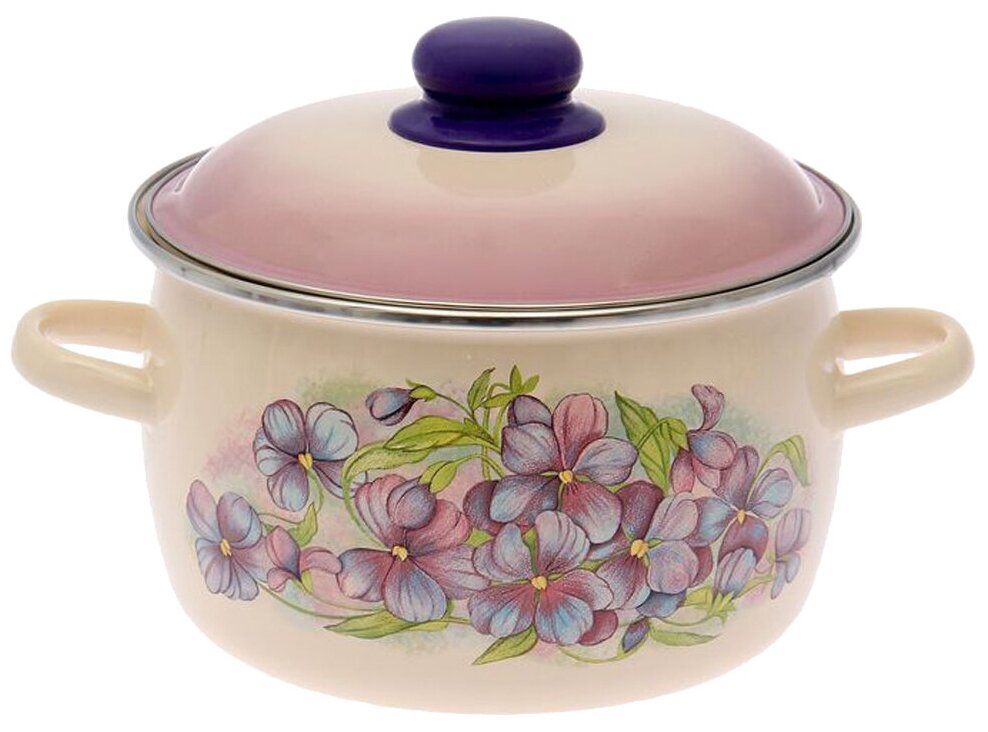 10 цен на Кастрюля эмалированная СтальЭмаль Фиалка, 3 л, слоновая кость