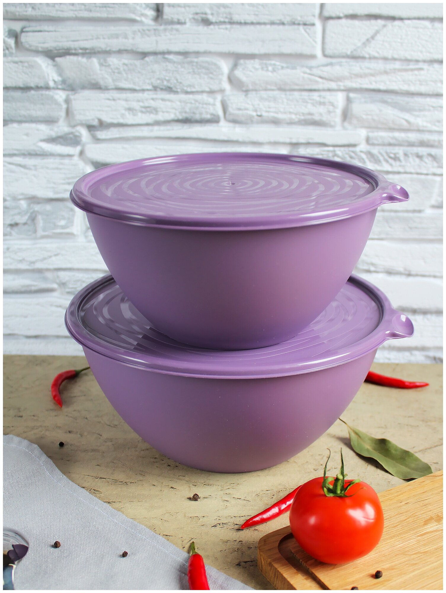 Набор салатников Martika / Мартика Риччи с крышкой, полипропилен фиолетовый, 2шт. объемом 2л, 3.2л / для сервировки стола
