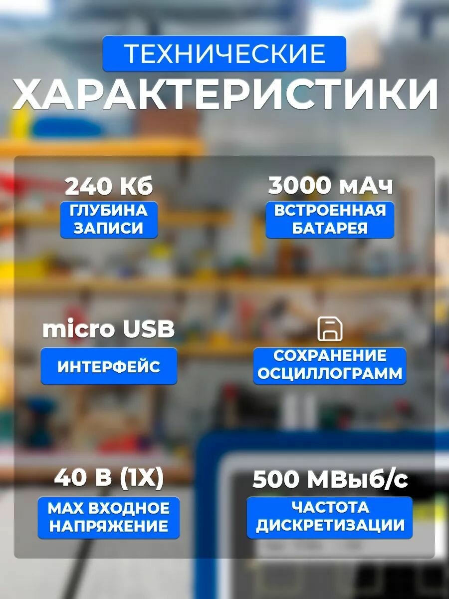 Осциллограф, Частота дискретизации 50 м, двухканальный, с USB-кабелем + кабель высоковольтного датчика X2