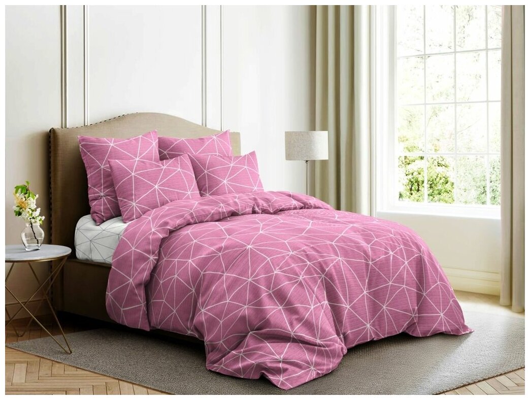 Постельное белье евро Ночь Нежна Грань, брусничный, поплин, наволочки 50х70, 100% хлопок 2 350 ₽