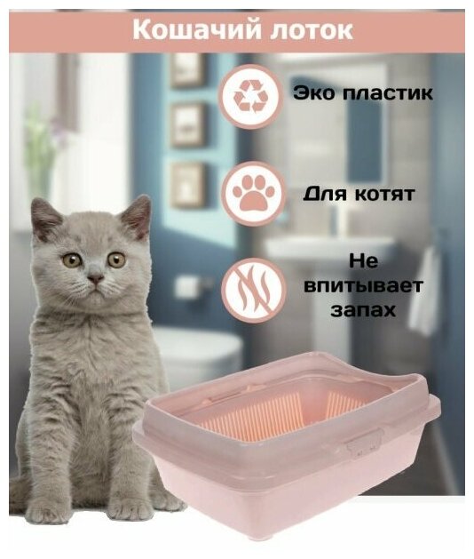 Отзывы на Лоток Туалет для котят полная комплектация, с бортом , с сеткой , розовый, 26,5 х 37 х 12,5 см