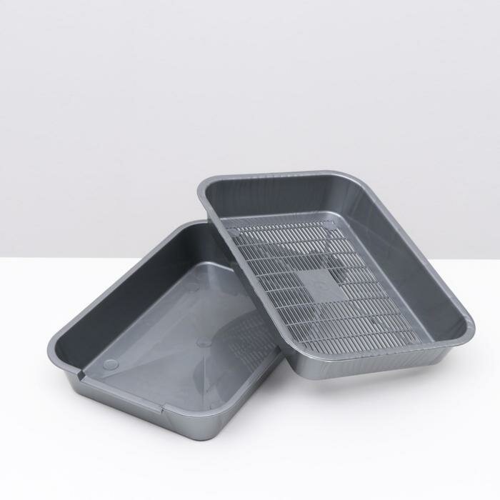 Лоток большой с сеткой и бортиком Atlantis "Стандарт", 43 х 33 х 12,5 см, серый