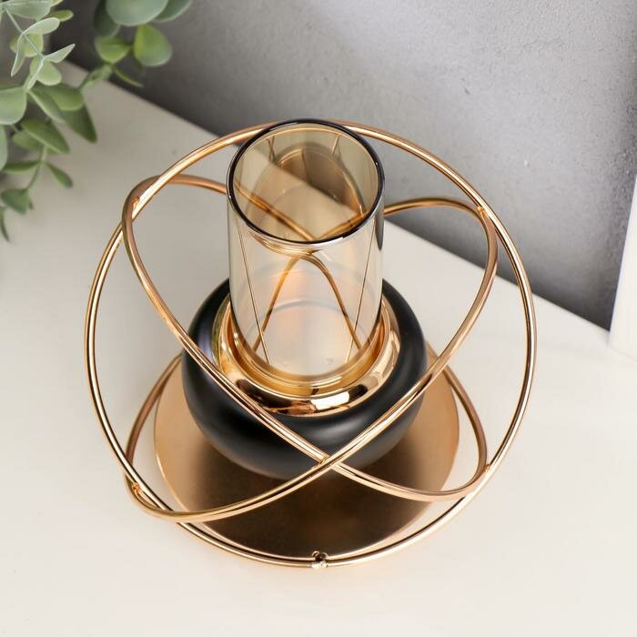 Подсвечник металл, стекло на 1 свечу "Сфера" чёрный с золотом 16,5х14,5х14,5 см информация: