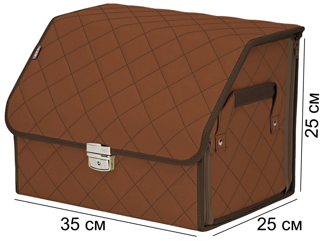 Органайзер-саквояж в багажник "Союз Премиум" (размер M). Цвет: светло-коричневые с коричневой прострочкой Ромб. информация: