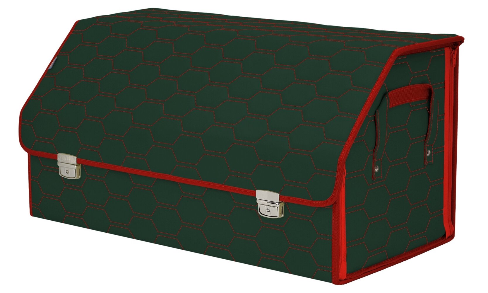 Органайзер-саквояж в багажник "Союз Премиум" (размер XL Plus). Цвет: зеленый с красной прострочкой Соты. информация: