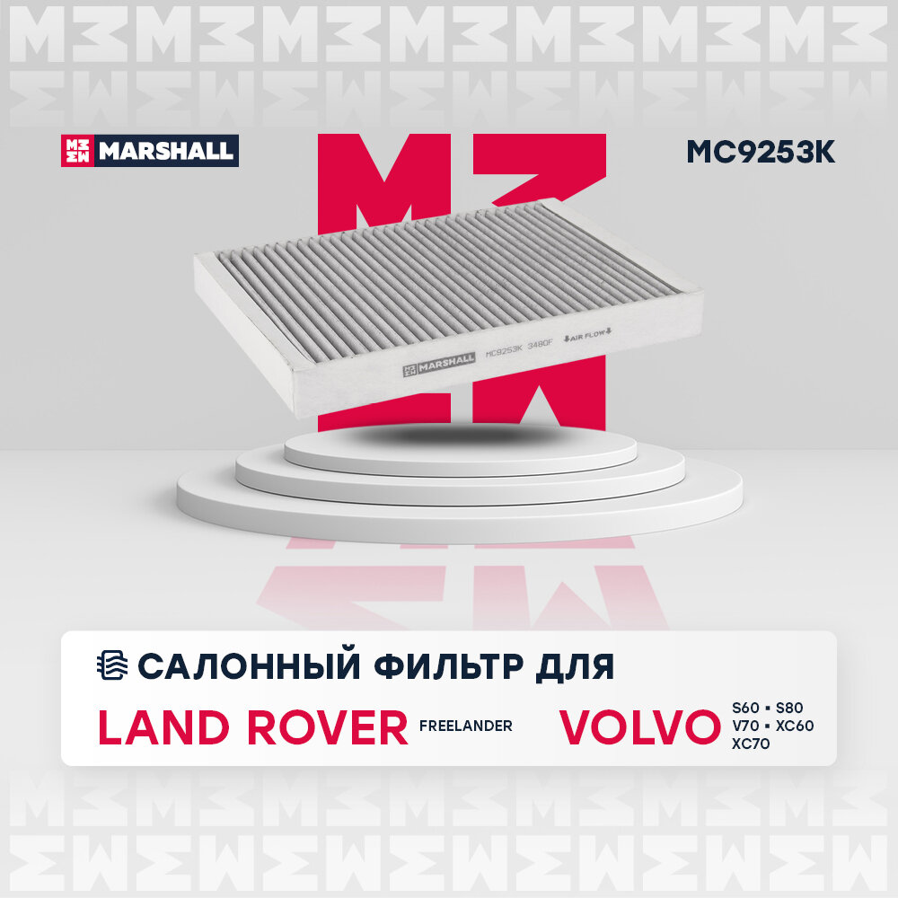 Фильтр салонный угольный Volvo S60 II 10- / S80 II 06- / V70 II-III 07- / XC60 08- (MC9253K) Marshall MC9253K Land Rover Freelander II 06-, , Volvo S60 II 10-,
