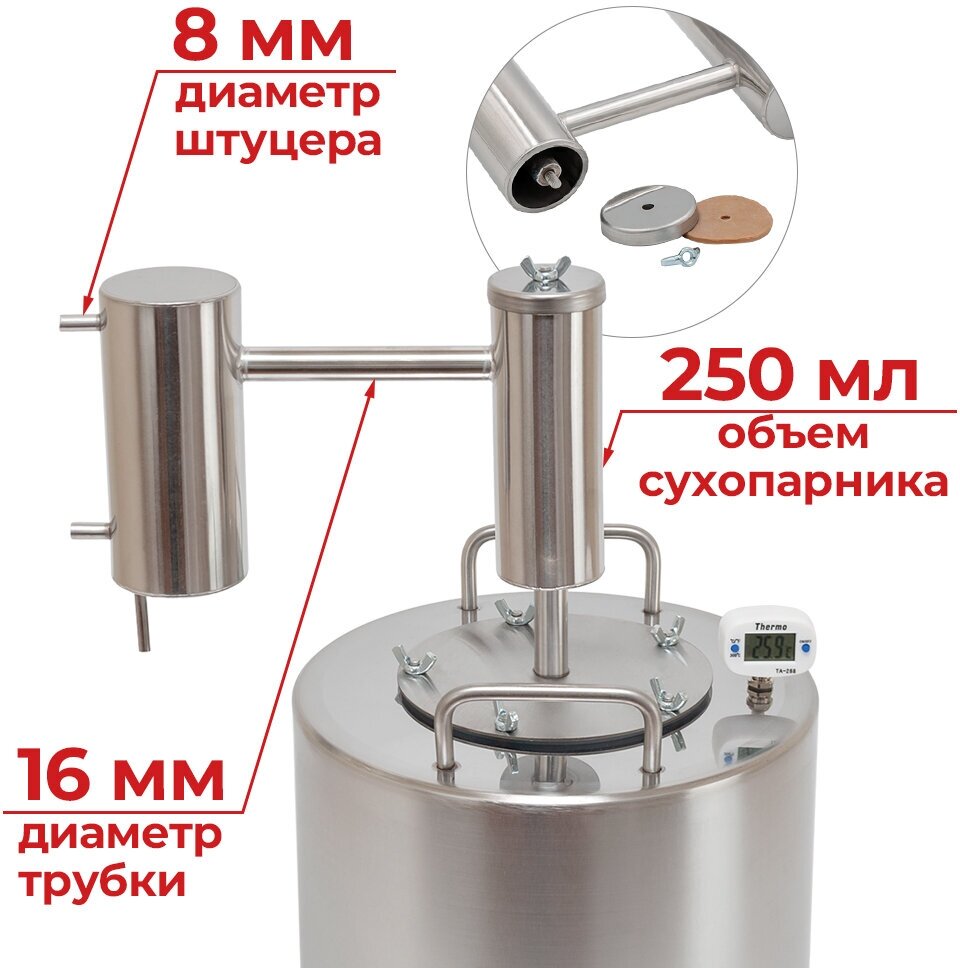 Дистиллятор Гони самогон Актив 25 л/Самогонный аппарат с мини колонной и сухопарником информация: