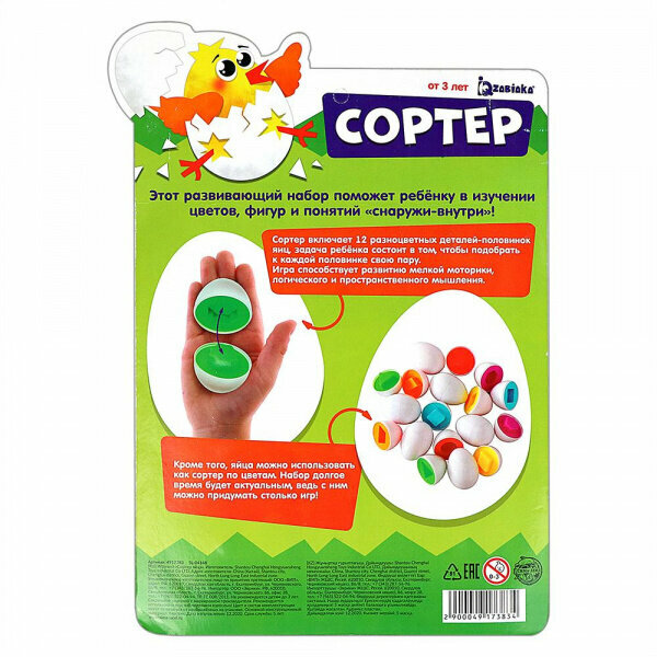 Сортер «Яйца» 6 цветов и геометрических фигур, Zabiaka информация: