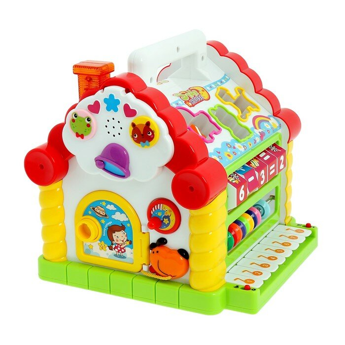 --- Игрушка развивающая логическая "Домик с ручкой", световые и звуковые эффекты, счёты, пианино, сортер информация: