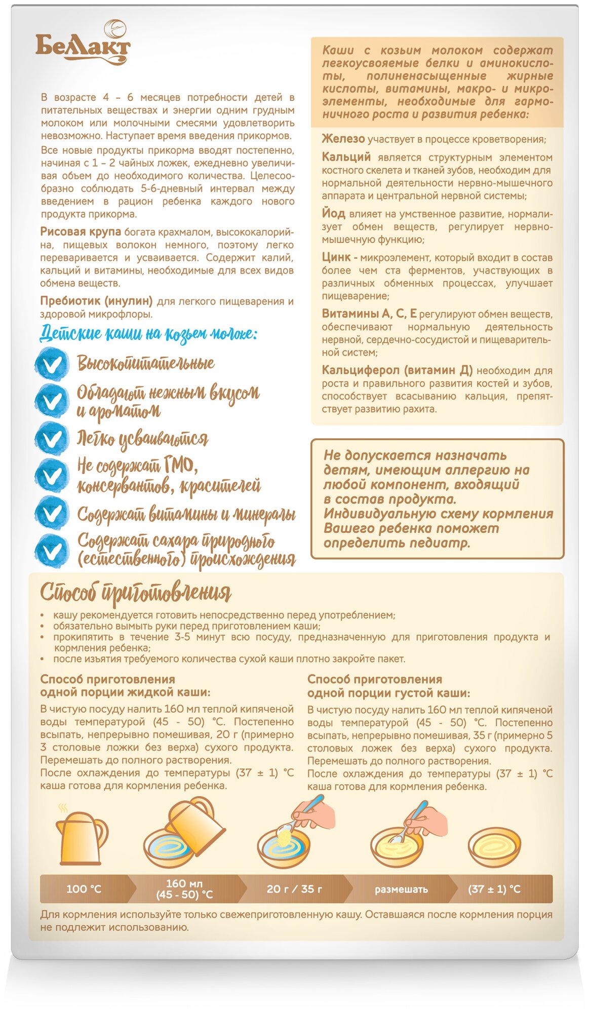 Беллакт Каша сухая на козьем молоке рисовая с вит., мин. и инулином 200гр информация: